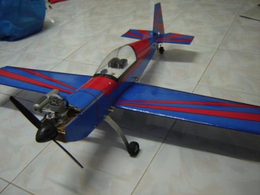3. อุปกรณ์อื่นๆ ก็มีเซอร์โวบังคับแพนหางดิ่ง , แพนหางระดับ และ แอร่อนผมใช้ FUTABA S3003 ส่วนเซอร์โวคันเร่งผมใช้ยี่ห้อ KTK ตัวละ 180 บาทเองครับ...5555 , ถังน้ำมันขนาด 150 CC., น้ำมันละหุ่งไนโตร 10% , แบต ฯ รีซีฟขนาด 800 มิลลิแอมป์ 4.8 โวลล์ , รีซีฟ E-SKY 6 แชลลแนล , วิทยุ 4EX ครับ....
