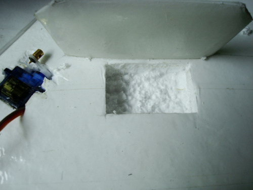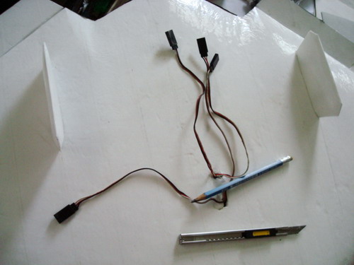 ใช้คัทเตอร์กรีดแล้วใช้ไขควงเล็กกรีดซ้ำตามรอยคัทเตอร์เพื่อฝังสายเซอร์โว