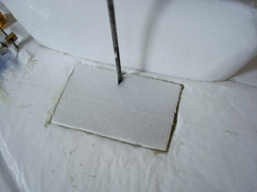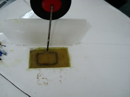เท Epoxy แค่ท่วมไม่ต้องถึงปากหลุมเดี๋ยวเลอะเทอะแถมเปลืองด้วย ในหลุมที่ต่ำกว่าพื้นตัดโฟม ๓ มิล.ติดด้วยกาวเขียว