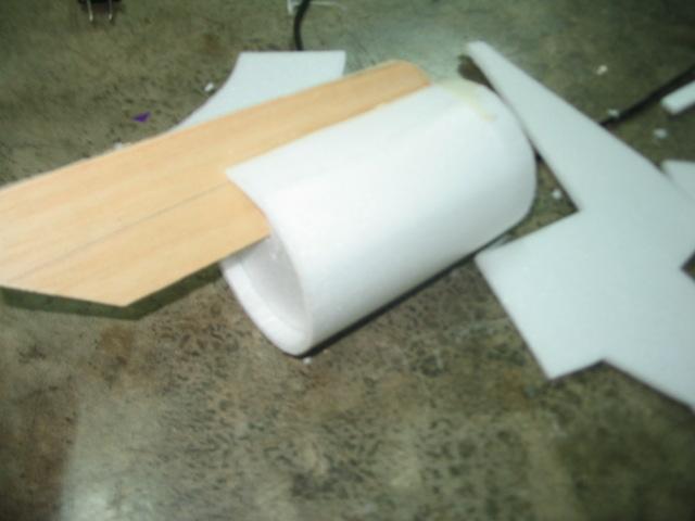 การทำส่วนที่โค้งๆก็ค่อยฝนกับขอบโต๊ะเอาครับ เอาด้านมันๆลงล่าง เราซื้อโฟม5มิลมาเป็นแผ่นเราก็ตัดขอบออกก่อนครับ ใช้หลักการไล่อากาศออกจากโฟมครับ