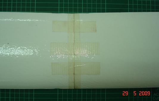 เวลานำปีกมาชนต่อกันมุมยก ถ้าวางกับพื้นระนาบอีกข้างหนึ่งควรสูง 5-6 ซม. ตรงรอยต่อให้เอาเทปใยสับปะรดพันรอบ แล้วติดอย่างในรูปครับ ติดแบบนี้แน่นมากครับและช่วยรักษามุมยกของปีกด้วย