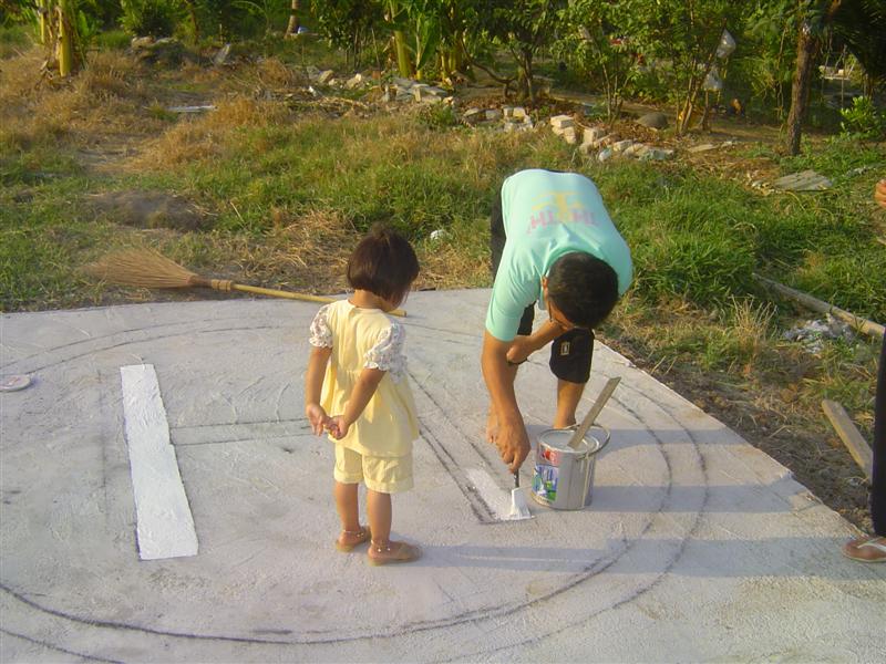 ภาพสนามมุมสูง หลังคาแดงคือบ้านประธานชมรม ลานหน้าบ้านคือลานฮอ เดี๋ยวจะลาดปูนทำให้ดีไปเลย ส่วนถนนในหมู่บ้านที่ตรงมาลานฮอก็คือรันเวย์ ส่วนบนฟ้าก็ใช้บิน สีเขียวเป็นแถบยาวคือคลองที่เต็มไปด้วยจอก ความจริงสนามจะกว้างครับแต่กล้องจับภาพได้เท่านี้