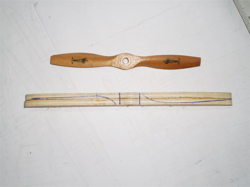 พอดีว่าผมเก็บใบพัดไม้ไว้อันนึง เลยขอนำมาเป็นแบบครับ อย่าลืมนะครับว่า ใบคาร์บอน , ใบพลาสติก , ใบไฟเบอร์ เนื้อมันจะเหนียวแน่นกว่าใบไม้มากนะครับ เพราะฉนั้นใบต่างๆจะเรียวเล็กอย่างไรคงไม่มีปัญหาครับ......