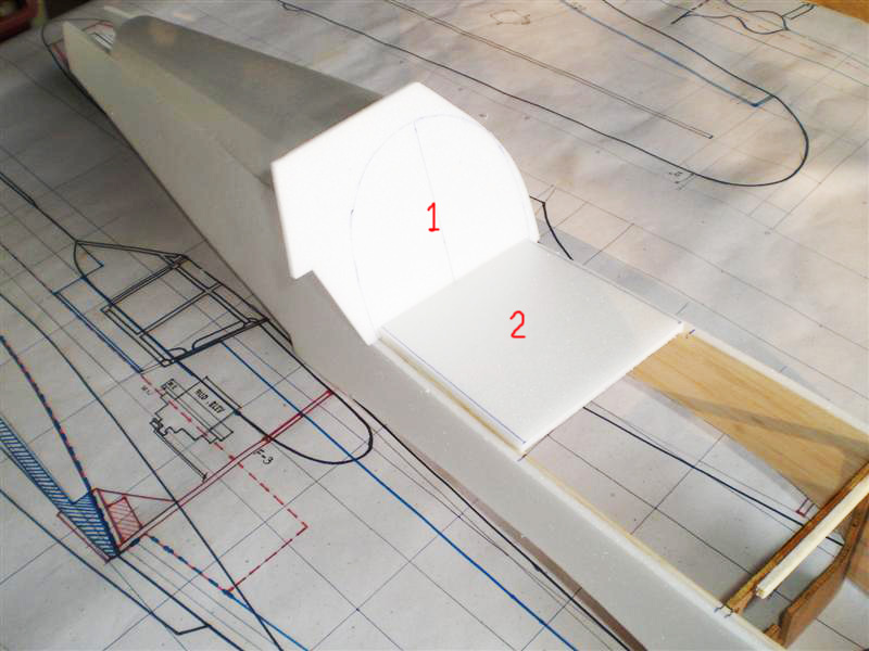 ทำแผ่นโฟมที่ได้จากแบบที่สร้างขึ้นมาใหม่ 2 ชิ้นครับ แล้วงอแผ่นโฟมขนาดตามที่จะทำฝาครอบด้านบนอีก 1 แผ่นมาประกบกันด้วยกาวก่อนที่จะนำมาประกอบเข้ากับลำตัวส่วนบนครับ