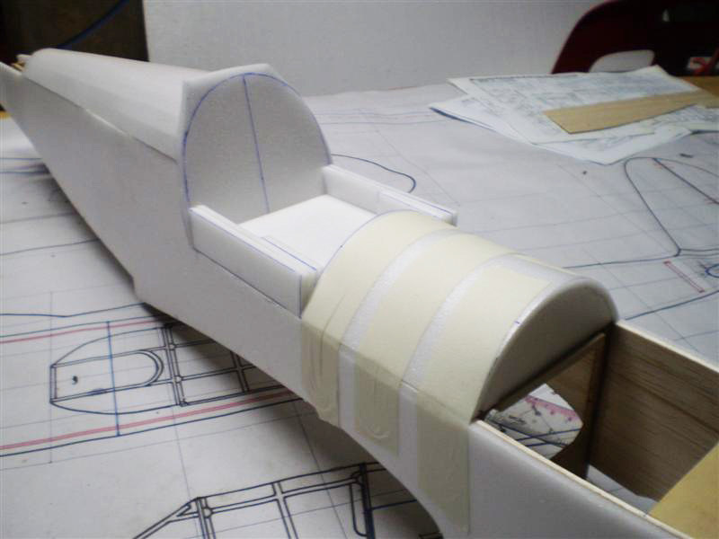 เอากระดาษกาวยึดไว้ก่อนครับ แล้วเอาเศษโฟมที่เหลือมาวางตรงข้างค็อกพิททั้งสองข้างได้เลยครับ