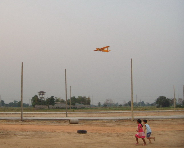 ระทึกใจดีครับ เมื่อวานผมไปบินที่หาดริมมูล บินผ่านต้นยางพารา ผมมองไม่เห็นจึงบินสูงขึ้น แต่แล้วพอผ่านต้นที่สองซึ่งสูงกว่าต้นแรก ก็ไม่เห็นเครื่องบินแล้ว จึงตัดเครื่องแล้วถ่างสติ๊กเพื่อให้ตก มองผ่านโคนต้นยางเห็นช่วงสุดท้ายก่อนตกเพื่อจดจำตำแหน่ง แล้วก็เป็นอันว่าปลดประจำการไปอีก1ลำครับ