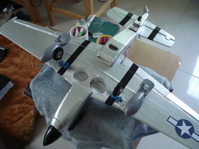 ลงเซอร์โวไปแล้ว ชุดควบคุมที่ปีกเรียบร้อยหมดแล้วครับ เหลือที่ลำตัว ตอนนี้ผมมีปัญหากับวิทยุFF7ที่ใช้ มันมีอาการเหมือนปิดสวิทช์เอง ไม่แน่ใจว่าเป็นที่ฐานเสาหรือว่าขั่วแบตฯ ต้องตรวจสอบให้แน่ใจอีกทีคร้บอาการแบบนี้น่ากลัว