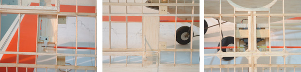 ถัดมาเป็นแท่นยึดเบลแคร็ง ใช้ไม้สนหนา 3 มม.กว้าง 2 ซม. ยาวเท่าช่องริบปีก และชิ้นที่ซ้อนอยู่ด้านบนที่มีขนาดเล็กกว่าประกอบกันดังภาพ