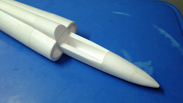 ลำตัวโฟม ที่ประกอบทีละครึ่งลำตัว แล้วค่อยนำมาประกบเข้าด้วยกัน