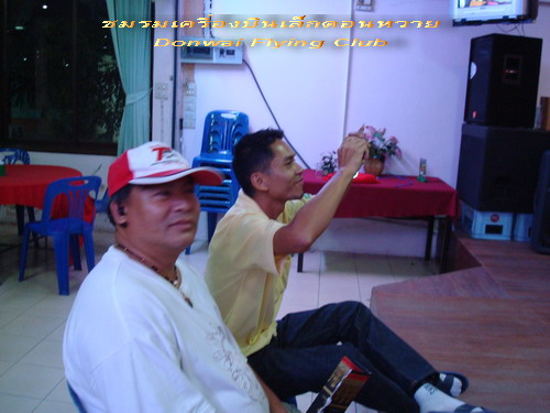 ชาวชมรม Donwai Flying Club เลยพากันไปเลี้ยงฉลองถ้วยฯ ฉลองวันเกิด และแถมท้ายด้วยเลี้ยงรับจารย์ Can ที่ไปราชการที่ภาคเหนือและภาคอีสานเสีย ๓ - ๔ (ความจริงเรื่องหลังนี่เป็นการหาเรื่องกินกันน่ะครับ) คืนนั้นจารย์ Can เดินทางกลับมาถึงประมาณ ๙ ทุ่ม ไม่ทันเข้าบ้านก็แวะฉลองกันเลย...
