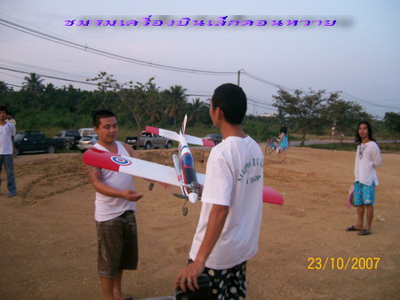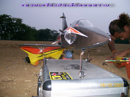 ขออนุญาตนำภาพที่แอบไปเล่นที่สนามบึงใหญ่ สุโขทัย มาสัก ๒ - ๓ นะครับ ๒ ลำนี้ของเพื่อนที่สุโขทัย ตัวขาวเป็น SU 27 อีกตัวเป็น 3 D แปลกดีเหมือนกันเพื่อนเล่นเครื่องบินธรรมดาไม่เป็น แต่เล่น 3 D ได้