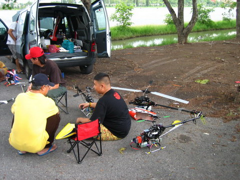 สำหรับวันอาทิตย์ จะมีฮอไฟฟ้าและน้ำมันเยอะหน่อย ที่บินกันหลักๆ ก็มี Raptor,JR, Trex600N, ไฟฟ้าก็ Trex 500, Drgonus, CopterX,MiniTitan