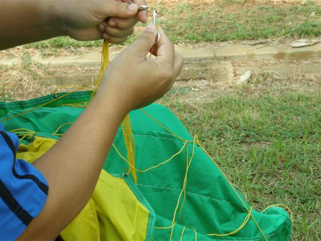 คว่ำกระจายม้วน ตีเกลียว 5ตลบ....ต้องมาสาง สายร่มกันใหม่ครับ...