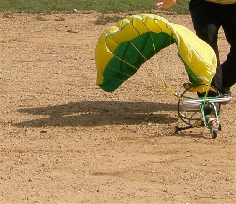 เมื่อร่มพับลง เครื่องก็จะหงายท้องกลิ้งม้วยเอาร่มเข้าไปด้วย ตรงนี้เองครับที่บอกว่าไม่เหมือนที่เราเล่นเครื่องบิน เพราะทุกครังที่เท็คออฟ...ก็ขึ้นไปแบบนิ่มๆ แต่ร่มนี่ ต้องใช้จังหวะที่ถูกต้อง..ทั้งลมและกำลังมอเตอร์ รวมไปถึงพื้นรันเว......ควรจะเรียบครับ....อย่างถนนลาดยางนี่ ท่าทางจะดีมากมากเลยครับ