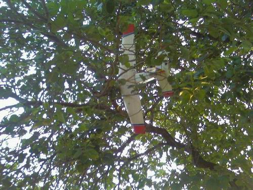 เจ้า F น้อยโดยยิงตกครับพี่น้อง สาเหตุคืออยากโชว์บินรอดต้นไม้ มันก็รอดพ้นจริงๆครับ แต่เมื่รอดไปแล้วต้นไม้มันบังมองไม่เห็นก็เลย......อย่างที่เห็นครับ.......
