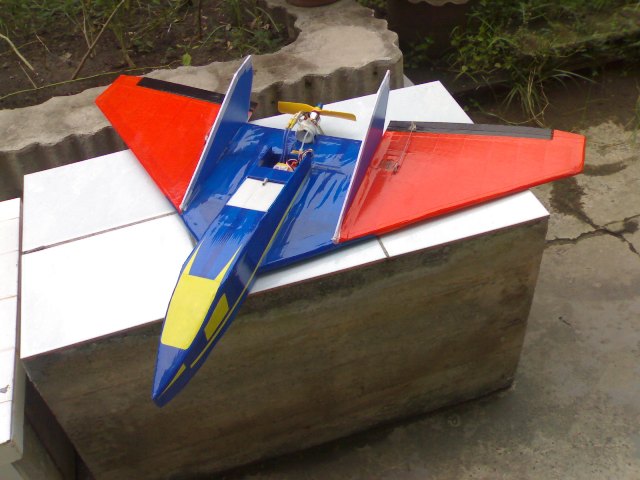 เคาเรียกว่าแกงการู เป็นแผ่นฟิวเจอร์บอร์ดเสริมโฟมบาง 5 mm ปีกกว้าง 0.90 เมตร ลำตัว 0.55 เมตร ใช้มอเตอร์บลัสเลส 2200 kv สปีด 30 แอมป์ ใบ 6x4 แบตลิโพ 3 cell 2200 มิลลิแอมป์ น้ำหนักพร้อมบิน 820 กรัม