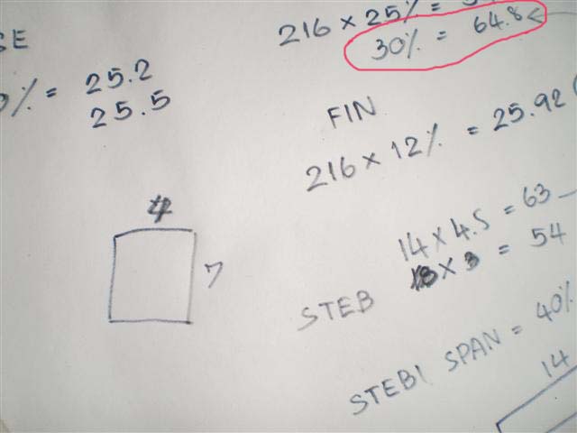 ยกตัวอย่างเช่นค่าของการกางปีก เราคำนวนออกมาว่าจะได้ 41.7 นิ้ว คอร์ดได้ 6.222 (สมมุติ) มันยุ่งยากมากในการสร้าง เราก็หลบหรือแก้ไขเอาเพื่อให้ง่ายกับการสร้างจะมากกว่าหรือน้อยกว่าก็ได้ เช่นลดลงมาให้เหลือ 40 นิ้ว