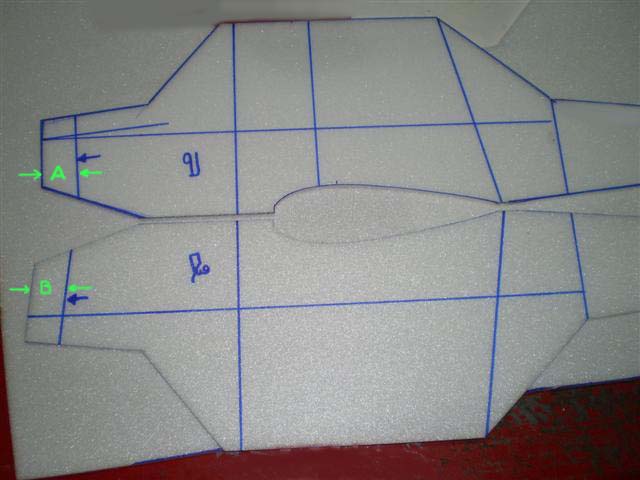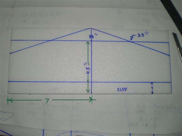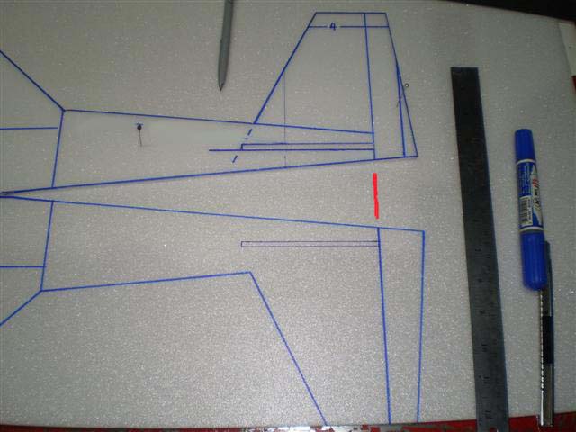 ก็แพนหางระดับนั่นเอง ถ้าเพื่อนคิดจะเอาโฟมหรือไม้ก็แล้วแต่ มันต้องมีความหนาใน บ.ของผมๆจะใช้โฟม 5 ม.ม. มาทำผมก็เลยจะเซาะร่องให้โฟมยัดเข้าไปได้ และผมก็ให้ชายหน้าของแพนหางระดับเสมอกันกับชายหน้าของแพนหางดิ่งซะเลย....
