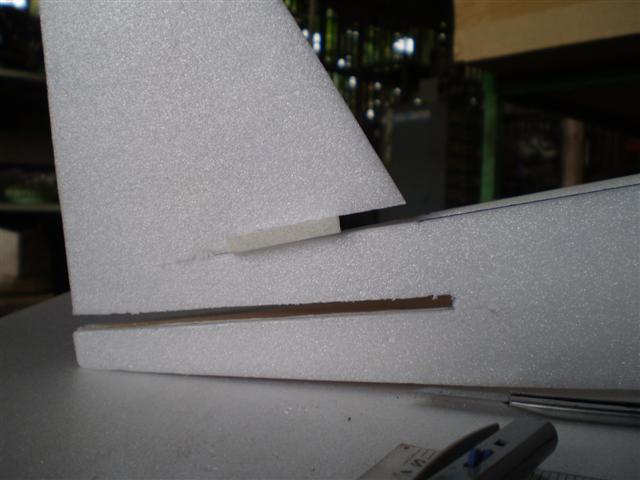 เสียบโฟม 5 ม.ม. เข้าช่องที่เราตัดเอาไว้ยาวมาถึงหลังปีกและต่อสันแพนฯดิ่งซะหน่อย