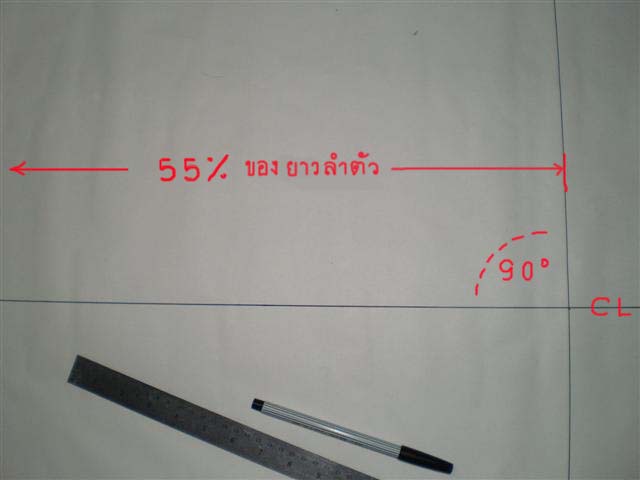 แล้วทีนี้ก็หาเส้นตั้งฉากอีกเส้นครับเป็นเส้นวางชายหลังปีก