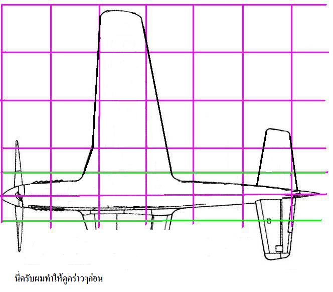 ทำตารางที่ภาพแบบของ บ.ภาพเล็กก่อนแล้วไปทำตารางในกระดาษแบบแผ่นใหญ่ที่เตรียมไว้ แล้วค่อยๆร่างเส้นตามแบบในภาพเล็กไปเรื่อยๆครับ เอาแค่เส้นนอกก่อน รายละเอียดเอาไว้ทีหลังครับ..