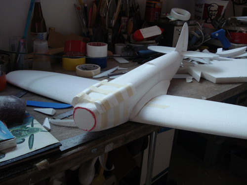 ต่อไปเป็นการขัดลำตัว อาจเปลืองตรงส่วนที่ขัดทิ้งไปหน่อย แต่วิธีนี้ง่ายกว่าดัดโฟมครับ