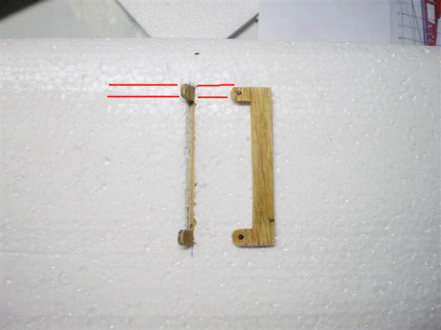 ต่อไปผมก็จะทำไม้ตามภาพที่เห็นเพื่อเอาไว้ยึดกัยเสาค้ำยันปีกครับ อันนี้ต้องใช้ไม้อัดเหมือนเคยครับ ยาวสองในสามสองความยาวคอร์ดครับ โดยจะฝังลงไปในปีกตรงตำแหน่งหนึ่งในสามส่วนของปีกข้างหนึ่งโดยวัดจากปลายปีกเข้ามา และตำแหน่งรูยึดเสาจะอยู่ตรงสปาพอดีสำหรับเสาหน้าส่วนเสาหลังเดี๋ยวค่อยว่ากันตามความเป็นไปได้นะครับ..