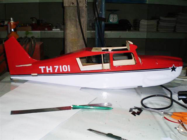 แล้วจะลืมOPPเลยหล่ะคุณMr.ToN คุณMIGครับอย่าใช้ความร้อนสูงเป่า มันร้อนมือ ผมใช้ความร้อนต่ำ เอาไดร์ผูกเชือกห้อยไว้ เสียบปลั๊กที่มีสวิทซ์ แล้วเอาไปวางที่เท้า เปิดสวิทซ์ไดร์ไว้ ปิดเปิดที่ปลั๊กด้วยเท้า ทำให้เราสามารถใช้มือได้ทั้งสองมือ เป่าให้อ่อนแล้วจับดึงยืดแบบโรตี ไม่ต้องติดแบบโมโนโค้ดก็ได้ คือจะติดตรงไหนก่อนก็ได้ ตัดแปะก็ได้ แต่...ติดผิดแล้วอย่าลอกออกมาเพราะมันจะเอาเม็ดโฟมติดออกมาด้วย ติดกลับไปอีกที ...อุ๊ย เครื่องบินเราเป็นอีสุกอีใสซะแล้ว แก้ไขโดยตัดทิ้งแล้วเอาสติกเกอร์ใหม่มาปะครับ ว่าจะลืมOPPไปเลยก็ไม่ถูกต้อง เพราะติดสติกเกอร์แล้วน้ำหนักเพิ่มมากกว่าOPPครับ