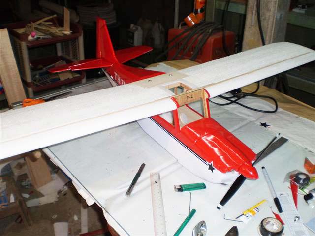 ผมเอาไม้หนีบๆที่ F - 2 กับสปาปีกไว้ด้วยกันก่อนครับเพื่อมันจะได้ติดสนิทกัน แล้วค่อยเจาะรูครับ...
