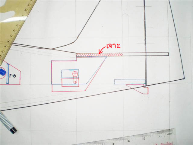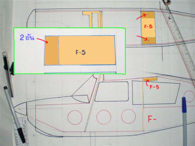 F - 3 ก็เหมือนกันวัดแล้วเขียนลงแบบครับแผ่น F - 3 ผมจะเอาไว้ทำฐานยึดปีกต่อไปครับ...