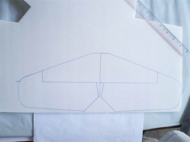 เอาแผ่นโฟม 5 ม.ม.วางลงไปบนโต๊ะทำงานแล้วเอากระดาษที่เขียนแบบไว้มาวางทับลงไปกะเอาว่าให้พอดีๆกับขอบโฟม จากนั้นก็หาอะไรทับบนกระดาษเพื่อไม่ให้แผ่นโฟมและแผ่นกระดาษเคลื่อนตัว แล้วเอากระดาษก๊อปปี้แทรกระหว่างแผ่นโฟมกับกระดาษเขียนแบบ