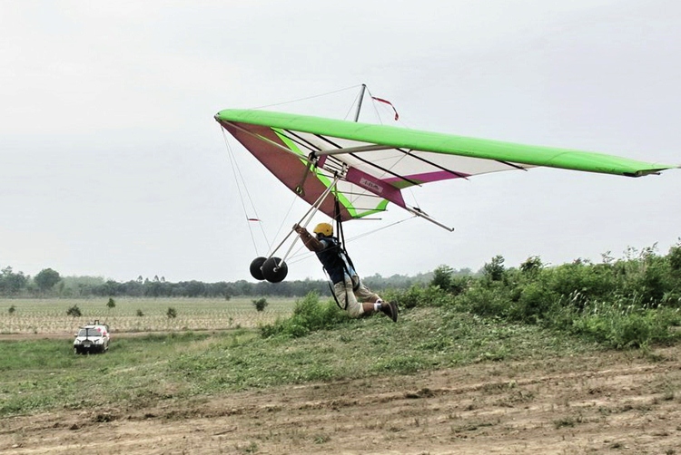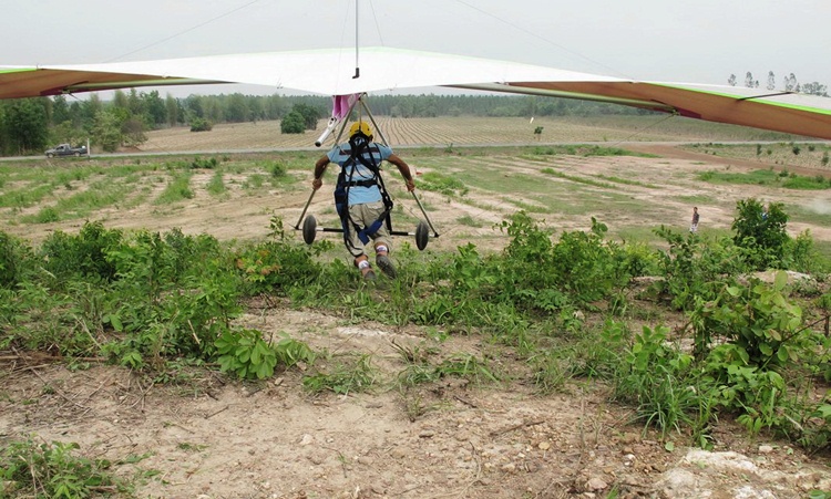 ประธานชมรม แนะนำตัวสมาชิกร่มบินท่านใหม่อย่างเป็นทางการ น้องตุ๊ก นักจิตรกรรม จากสถาบันเพาะช่าง พาขึ้นบินพาราเพลนแล้ว กำลังฝึกตั้งร่มอยู่