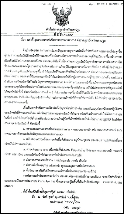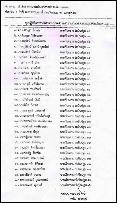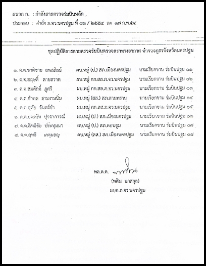 คำสั่งตำรวจภูธรจังหวัดนครปฐม แต่งตั้งเจ้าหน้าที่สายตรวจร่มบิน และผู้ช่วยเจ้าพนักงาน