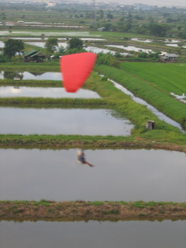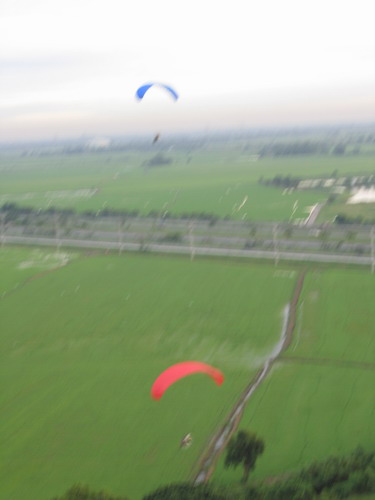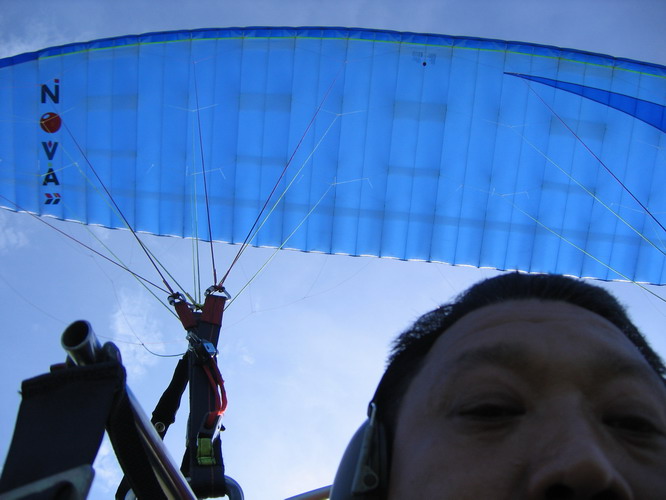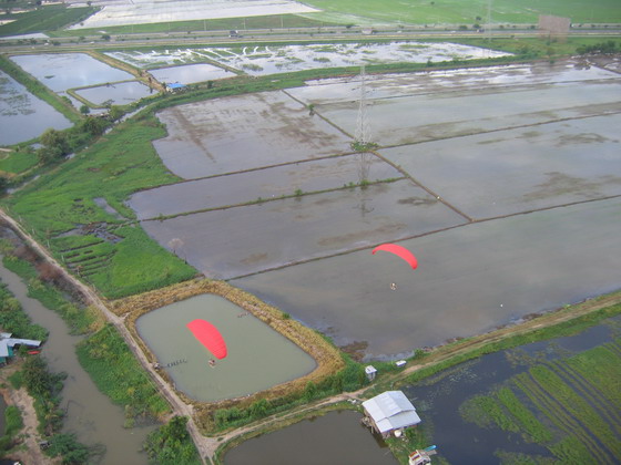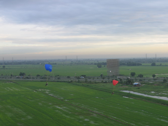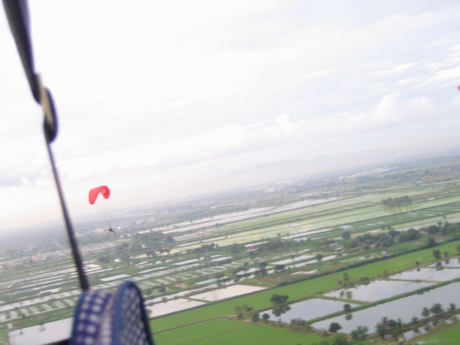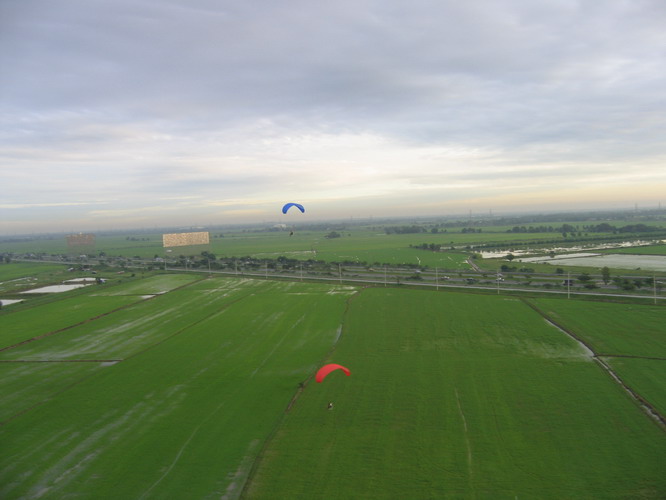 มองลงไป จะเห็น ร่ม Speedoo 23 เล็ก ป้อมๆ กลมๆ ไม่เรียวยาว แต่บินสู้ลมดีนัก
