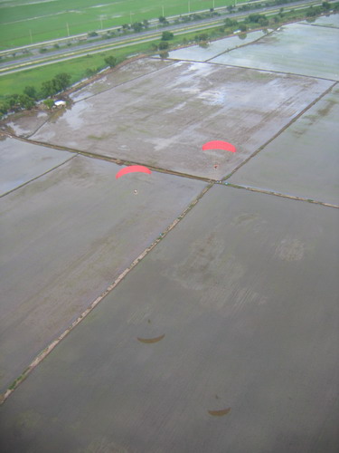 ลงตัวครับ สีของร่มที่บินเดินทาง แดง 3 น้ำเงิน 3 ถ้ารวมผมกับพี่หงาด้วย