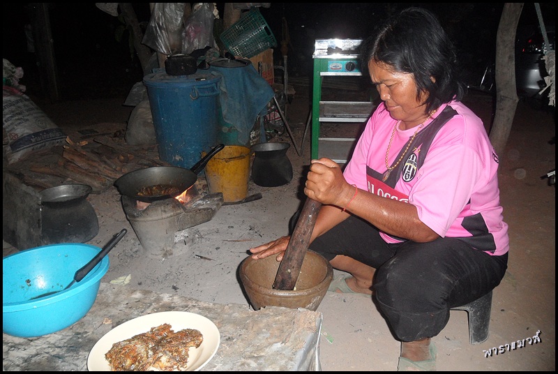 เจ้าของบ้านที่เราขอพักอาศัย ทำกับข้าวให้เรากินกัน...