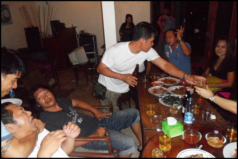 หลังจากบินเดินทางกันเเสร็จในช่วงเช้า ช่วงบ่ายยั้นเที่ยงคืน ก็สังสรรค์กัน ที่พักเปิดเหมาไว้รอรับ โดยเจ้าภาพ พี่นิพนธ์