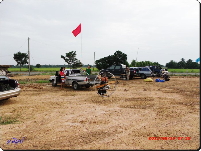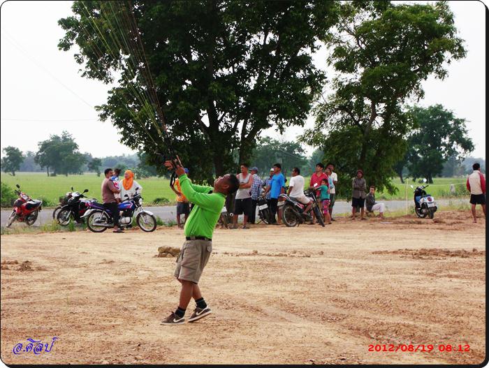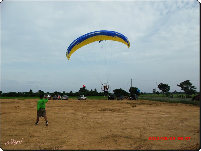 เช้า 19 ส.ค.55 ที่บึงฉวาก สุพรรณบุรี หมอแดงเป็นเจ้าภาพ ทีมร่มบินกำลังเตรียมการบิน