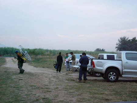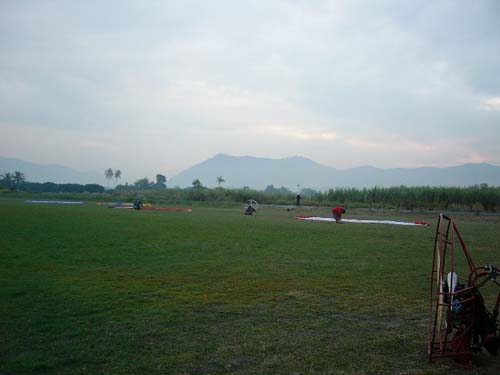 นัดกันมา 6โมงเช้า ที่สนาม แต่กว่าจะมากันพร้อมก็ 6โมงครึ่ง ช่วงนี้ 6โมงเช้าดูยังมืด มีหมอกเยอะ ลมก็นิ่ง พวกพี่ๆจึงไม่รีบร้อน วันนี้บินได้เป็นชั่วโมงแน่