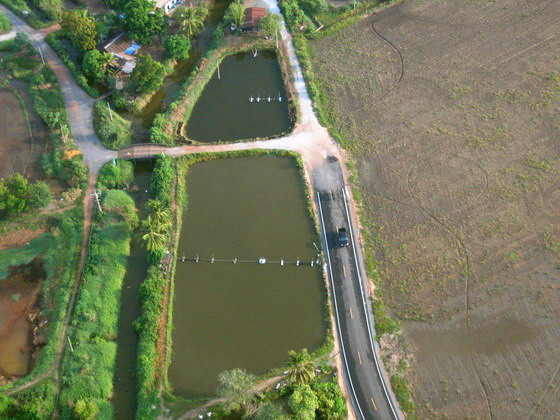 ภาพด้านล่าง ท้องนา ต้นไม้ น้ำ ถนน รถกระบะ