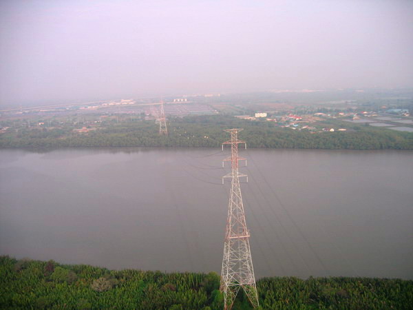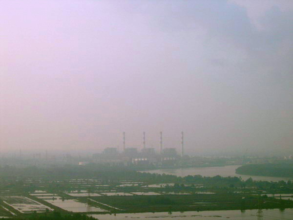 ผมไม่รอแล้วครับ บินนำ โดยให้ปล่องทั้ง 4 ของโรงไฟฟ้าบางปะกง อยู่ทางด้านซ้าย