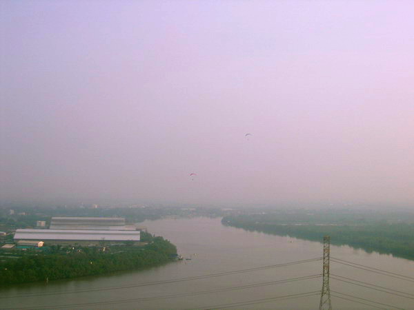 วันนี้ ผมใช้ร่ม Nova 24 เครื่องชายกลางขนาด 170 กว่าซีซี ถังน้ำมัน 20 ลิตร กำลังจะบินข้ามแม่น้ำบางปะกง ครับ