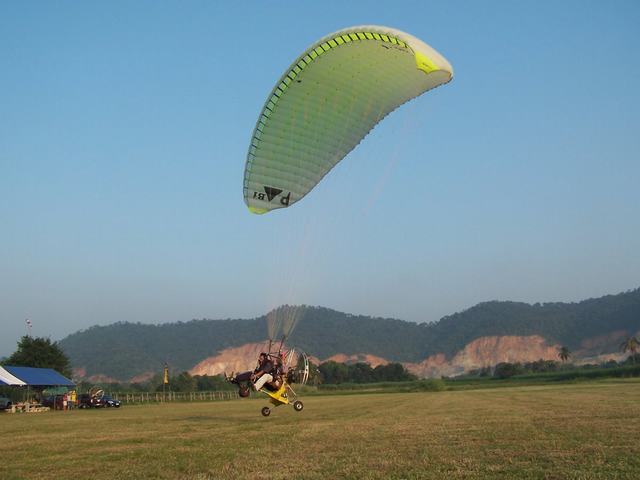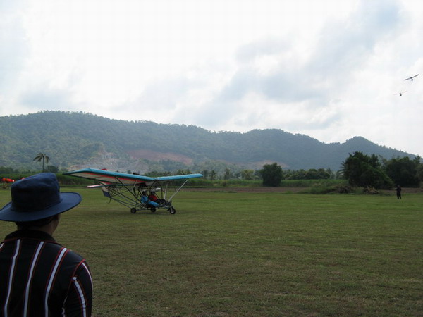 บรรยากาศช่วงเช้าวันทำบุญ ร่มบินก็บินกันไปให้เต็มท้องฟ้า ส่วนนี่ก็เป็น Ultralight จาก CMT มาเยี่ยมแต่เช้าตรู่ นัยมามาดูลาดเลาก่อน