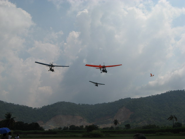 หลังทำบุญเลี้ยงพระและคนกันเรียบร้อยแล้ว ทีนี้ก็เป็นหน้าที่ของทีมครูการบินจาก CMT แสดงบ้างล่ะ เรียกได้ว่าเป็นการแสดง Ultralight Air show ได้เลย เรียกได้ว่า พวกเราหลายคนอยากข้ามไปสัมผัส Ultralight ขึ้นมาซะแล้ว ไม่รู้ลุงโยจะลดค่าเรียนให้เป็นพิเศษสักเท่าไหร่