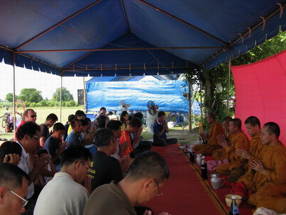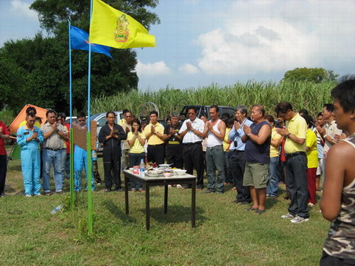 เมื่อคิดเห็นตรงกันเช่นนี้ จึงได้นิมนต์หลวงพ่อปิ๊น เจ้าสำนักวัดหน้าเขาบ่อยาง และเจ้าสำนักวัดแจ้งเจริญดอน ( ควบสองวัด ) มาเป็นประธานพิธีฝ่ายสงฆ์ โดยจะสวดเพื่อเป็นสิริมงคล และถวายอาหารเพล ในวันอาทิตย์ที่ 26 พย. 49 บริเวณ Hanga สนามบินไร่องุ่น อนึ่ง สนามบินไร่องุ่นได้รับความอนุเคราะห์ จากท่านอาจารย์ปิ๊น ทั้งในเรื่อง น้ำ ไฟฟ้า ห้องน้ำ ฯลฯ ตั้งแต่เริ่มทำสนามบินจนถึงปัจจุบัน