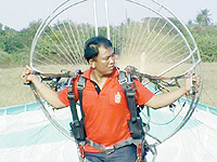 ที่พี่แดงพูด "ถูกต้องแล้วคร๊าบบบบบ" โดยหลักการแล้วในระดับความสูงที่เครื่องดับเราสามารถเตรียมตัวได้ ตั้งสติให้ดีครับ ปลดสายรัดออกให้หมด สายคอลโทล สายคันเร่ง และสายคล้องบ่า เมื่อความสูงลดลงมาเหลือประมาณ 3 - 4 เมตร ให้ทิ้งตัวลงมาในลักษณะท่ายืน เหมือนตอนที่เราลงจอด ตัวของนักบินจะไหลหลุดลงมาก่อน ส่วนร่มและเครื่องจะเดินทางไปด้านหน้ากว่าจะถึงผิวน้ำก็หลายเมตรอยู่ทำให้เราไม่ถูกร่มลงมาคลุมครับ