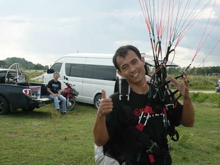 เมื่อวันที่ 2 ก.พ. 2551 มีโอกาศได้บิน ร่มรามา ตอนแรกตั้งใจจะไปดูเครื่องมีโอ ที่ คุณกฤศ ชลบุรี แต่พอเอาเข้าจริงๆ เครื่องมีโอไม่เอาแล้ว ซื้อร่มรามา มาเลย เพราะอะไร เพราะว่าบินแล้วถูกใจมาก ตั้งง่าย คุณภาพดีมาก ไม่น่าเชื่อเลยว่า จะมีร่มบินพารามอเตอร์ ที่ดีมากและก็ราคาถูกถึงเพียงนี้ ถ้าวันนั้น มิสเตอร์โนไม่เอาร่ม ที่เพิ่งจะเย็บเสร็จในวันนั้นมาให้ทดสอบคงจะไม่เปลี่ยนใจเด็ดขาด เพราะว่าคิดว่าร่มเดิมที่ใช้อยู่ก็ดีอยู่แล้ว
