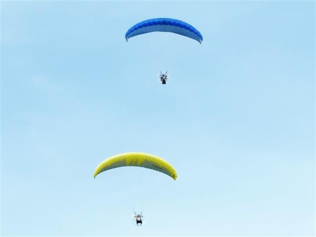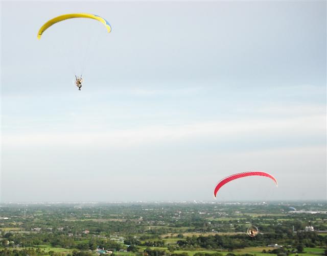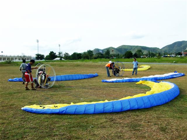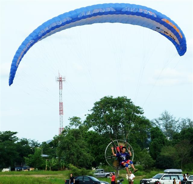 มีทีมร่มบินนครปฐม น้าเปี๊ยก บางปะหัน พี่ใบไผ่ พระราม 2 กำลังบินเล่นอยู่ โดยเฉพาะน้าเปี๊ยก ควงซะสงสารเครื่องจังเลย ..