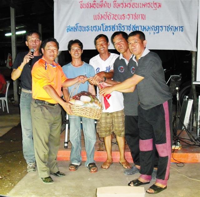 .. .. พี่ชิดชัย ตัวแทนร่มบินสองพี่น้อง มอบกระเช้าแสดงความยินดีกับพี่โบ้ ที่ใช้ฝีมือคว้าถ้วยชนะเลิศ ซึ่งเป็นถ้วยพระราชทาน