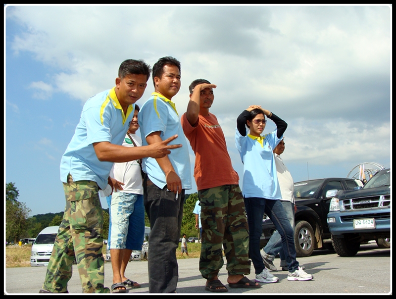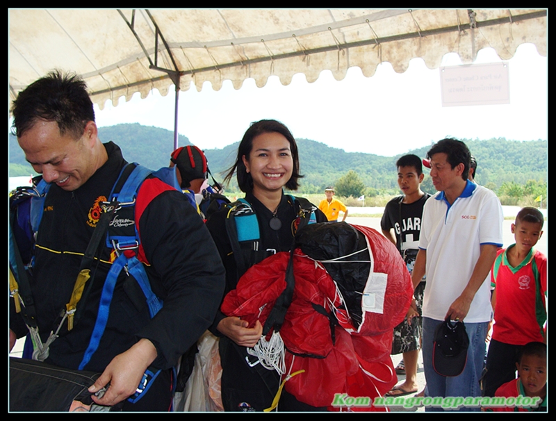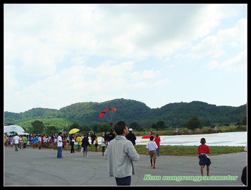 ท่านประธานทักทาย กับทีมร่มบินนางรองแล้วบอกว่าพร้อมเมื่อไรให้บินโชว์ต่อจากทีมดิ่งพสุธาเลย